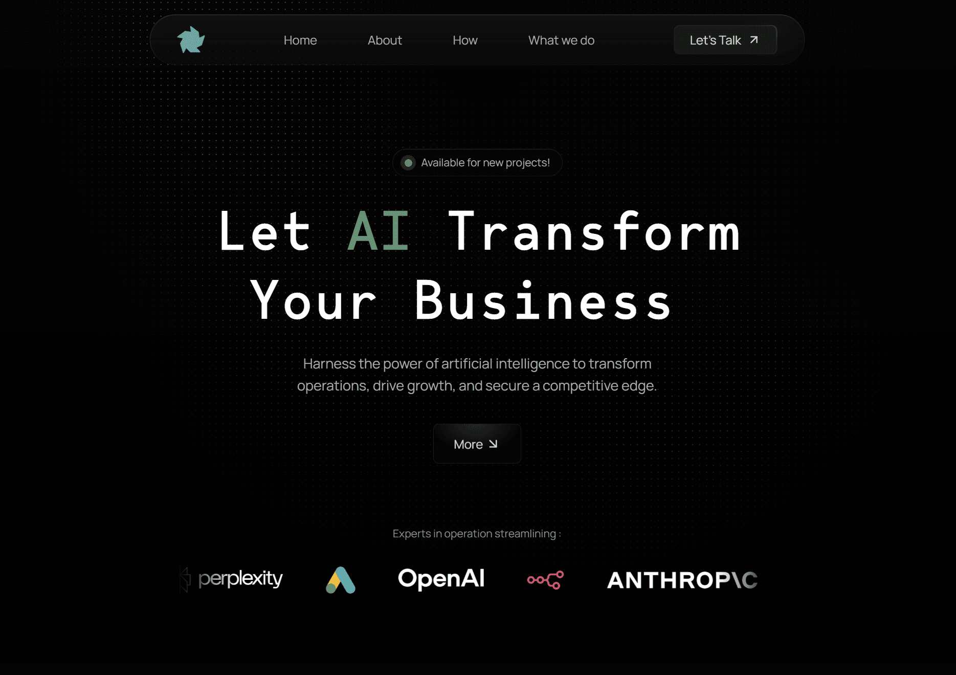 A Consulting Firm, focused on helping small/mid sized businesses implement AI to streamline their processes.