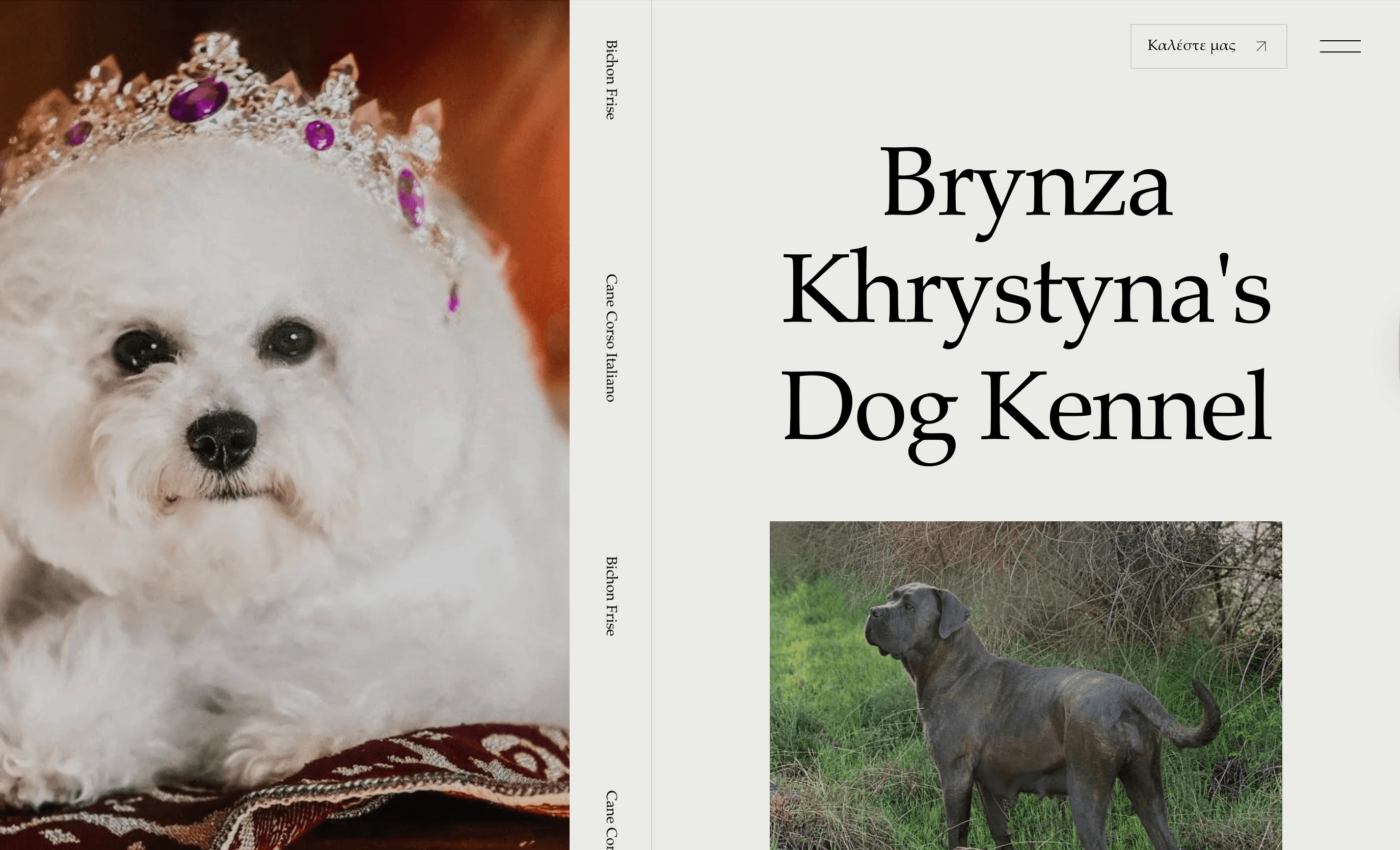A Greek-based kennel focusing on perfecting the breeds Bichon Frise and Cane Corso Italiano.